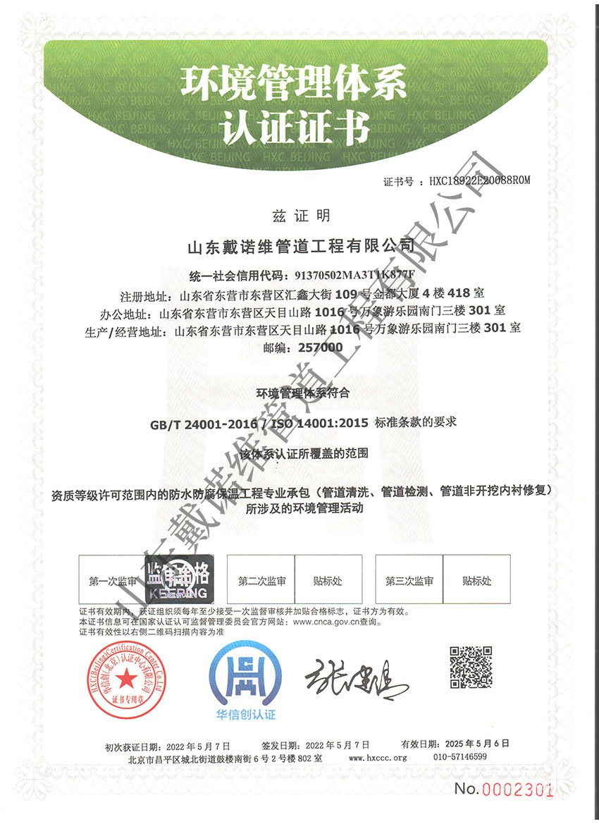 管道非開挖修復(fù)工程服務(wù)企業(yè)資質(zhì)證書