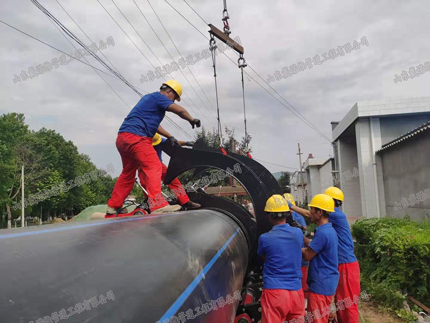 管道內襯PE管修復是將外徑等于或略小于待修復管道內徑的HDPE襯管,通過專用壓U設備,截面被壓變成雙層U形。在牽引力的作用下穿入待修復管道內部。穿插到位后,利用壓力打開管腔,使之恢復成圓形,與外管道內壁貼合,形成牢靠的復合管。